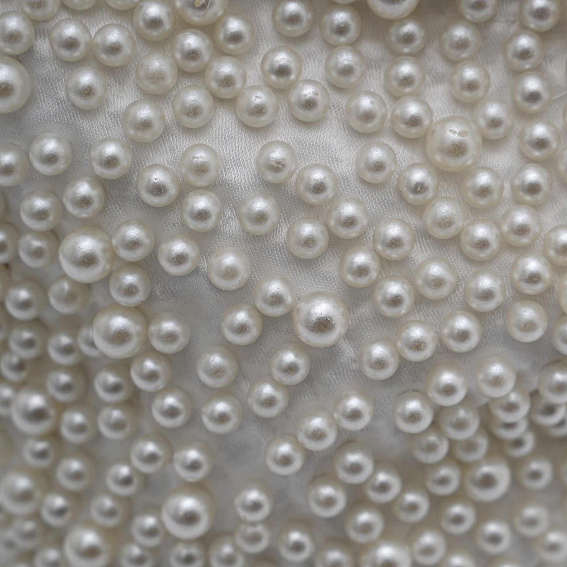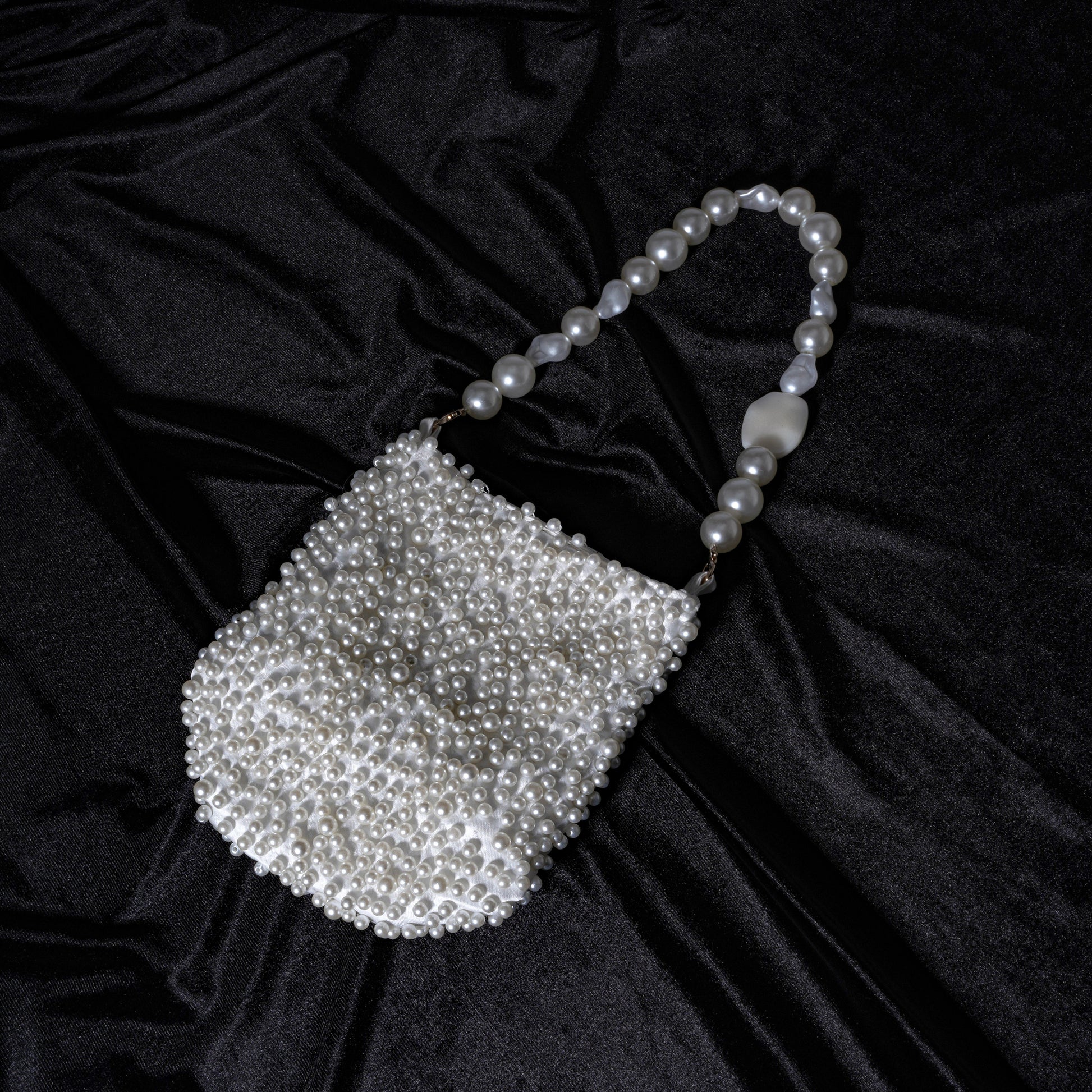 - The entire body of the bag is embroidered with glass pearls