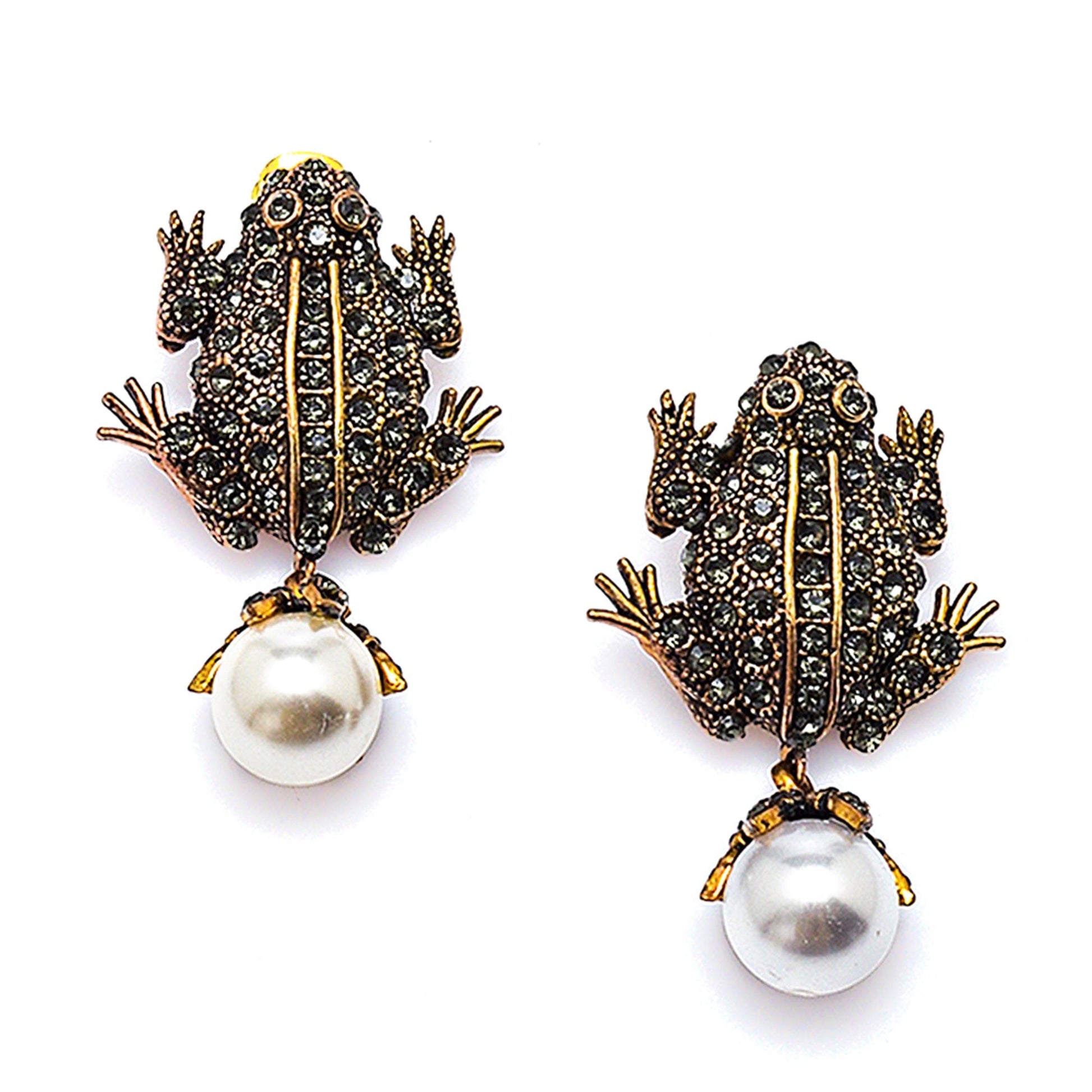 Step into a world of enchantment with the Prince Frog Earrings, a whimsical yet sophisticated accessory inspired by timeless fairy tales. Expertly crafted from high-quality bronze, these earrings feature a charming frog-shaped design adorned with diamond-mounted high-quality Mallorca pearls and zircon stones. The removable pearl piece allows for two different styles of wear, making them a versatile addition to your jewelry collection. With a weight of 31g and a secure pin closure, these earrings seamlessly blend playfulness with refined elegance.